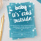 Baby It's Cold Outside Baby shower Invitation est un étonnant arrière - plan bleu avec des flocons de neige blancs dansant autour d'un mélange de calligraphie moderne et de polices traditionnelles. Cette belle invitation au baby shower est parfaite pour votre baby shower d'hiver !