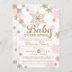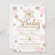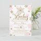 Des flocons de neige roses et dorées entourent cette belle invitation parfaite pour un baby shower d'hiver pour accueillir une petite fille, jumeaux ou multiples. Voir la boutique pour les articles correspondants !