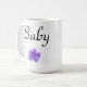 Für das Kinderzimmer, sagt diese Tasse das Wort "Baby", unter dem es ein nettes kleines Bild von einem Violett.