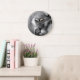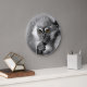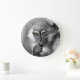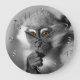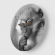 Schwarz-Weiß-Foto eines Mangabey-Babykirschenkröns mit schönen braunen Augen, das Leben in Betracht zieht.