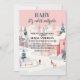 Perfektes Winterwunder-Wunderland-Ferien-Babydusche-Erlebnis für ein Baby-Party im Winter.Das Design präsentiert Winterwald mit Kiefern und Schneeflocken mit niedlichem Winterpinguin. Wasserfarbene Kiefernbäume mit Winterlandschaft mit dem Text "Baby seine kalte draußen".Baby seine kalte Außendusche.