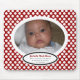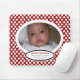 Schönes Rot mit weißen Polkapunkten gerahmtes Mousepad. Addieren Sie einfach Babys Bild und Geburtsinformationen. Sie nicht sind zwar in der Lage, die Kinder zur Arbeit mit Ihnen zu nehmen, aber Sie können ihre Schönheit bei der Arbeit mit einem schönen personalisierten Mousepad auf unserem Desktop teilen.