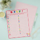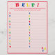 Das Design zeichnet sich durch einen hellrosa Hintergrund und einen hellen roten Rahmen und Text aus. "HELP!" wird oben in hellen Farben angezeigt. Auf Wunsch können Sie die Richtung für eine personalisiertere Touch anpassen. Die Gäste werden gefragt, die Namen der weiblichen Babys anzugeben, beginnend mit dem angegebenen Buchstaben. Auch in blau erhältlich. Konzipiert zur Koordination mit der "ABC Baby Shower and Kinderzimmer Collection".