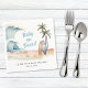 Niedliche Babydusche zum Thema Sommersurfen mit einer tropischen Wasserfarbenlandschaft mit Wellenbrechern, Palmen, Sandstränden, aquamarinen und braunen Surfbrettern und "Baby On Board" mit einem lustigen Retroblau-Drehbuch. Personalisieren Sie den Namen der Mutter und das Baby-Duschdatum in einfacher Schrift.