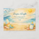 A cheerful surf-inspired baby shower design featuring sunny skies, rolling ocean waves, seashells, and playful beach elements. This light, summery artwork is ideal for a relaxed seaside celebration and can be easily personalized with names, dates, and event details while keeping a fresh coastal vibe.