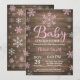 Baby seine kalte Outside Rustic Winter Baby Dusche Einladung.Einladung zur Kinderdusche. Winter Holiday Baby Dusche einladen. Rosa und weiße Schneeflocken. Rustikaler Holzboden. Vintages Retro.