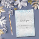 Ein Imitat silber aussehender Hintergrund mit blauen Imitat Glitzer, Glitzern. Personalisieren und fügen Sie Namen und ein Datum vorne ein. Zurück: Vielen Dank für Ihre Anmerkung und Namen
