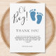 Le carte de remerciements de baby shower de ce mignon garçon comporte le texte "Oh garçon !" en typographie stylisée avec parties scintillant bleue pieds bébé. Facile à personnaliser.