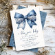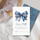 Une adorable invitation au baby shower qui incarne l'essence du charme champêtre ! Ce design enchanteur présente un arc de coquette en jean bleu fantaisie, orné d'exquis détails de perle et de dentelle qui ajoute une touche d'élégance. Le beau contraste avec l'arrière - plan blanc doux crée un attrait visuel saisissant. En retournant à l’envers, on dévoile un imprimé en jean bleu rustique, qui renforce l’allure campagnarde de l’invitation. Faites de cette pièce extraordinaire une véritable vôtre en la personnalisant avec vos détails uniques. Vous pouvez choisir parmi une variété d'options pratiques, y compris les versions imprimées et les téléchargements instantanés, assurant une expérience transparente pour votre occasion spéciale.