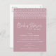 Que vous ne puissiez pas vous rassembler pour une fête en raison des directives de distanciation sociale coronavirus, ou que votre famille et vos amis à distance sont juste trop loin, ce Baby shower boho branché par l'invitation par courrier permettra à des proches de célébrer votre nouveau bébé de n'importe où. Le design se compose d'une bordure tribale d'inspiration en tissu de boue cool et d'une typographie minimaliste moderne. Montré sur un arrière - plan mauve violet ou utiliser les outils de conception pour customiser dans n'importe quelle couleur pour bébé garçon ou petite fille. Ajoutez les détails de votre baby shower virtuel ou votre personnaliser pour convenir à votre événement.