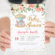 Carte de Baby shower Cheval Carousel Rose avec de beaux confettis fleuris et or.