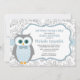 Un joli petit baby shower à thème boisé pour un garçon en bleu et gris avec arrière - plan et pois de feuilles d'aquarelle.