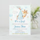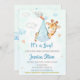 Baby shower de cigogne Invitation bébé girafe baby shower invitation Genre révéler l'invitation de la fête. Invitation vos amis avec cette invitation colorée de baby shower garçon aquarelle avec une cigogne, une petite girafe et quelques nuages autour. Customisez tous les textes sur ce modèle facile à utiliser pour le rendre unique !