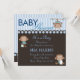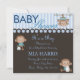 Ce baby shower Invitation personnalisable moderne présente des singes sur un arrière - plan rayé bleu clair et foncé. Customisez-le en ajoutant vos détails dans la couleur et la police de votre choix ! com com. com