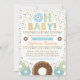 Invitation au baby shower à thème donut / donut beignet avec illustration des beignets de momie et des arroses colorées