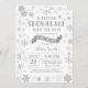 Baby shower d'hiver. Flocon de neige gris. Invitation Baby shower garçon ou fille. Invitation Baby shower de vacances d'hiver. Les flocons d'argent blanc et gris. Fond blanc. Pour plus de personnalisation, cliquez sur le bouton "Customiser" et utilisez notre outil de conception pour modifier ce modèle.