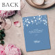 Eine Dankeschön-Karte für eine Babydusche. Eine staubige blaue Hintergrundfarbe. Mit weißen Sternen dekoriert. Zurück: Personalisieren Sie Ihre Dankeschön Notiz und Name.