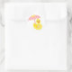 C'est un autocollant mignon que vous pouvez utiliser pour un baby shower. Il comprend un canard en caoutchouc jaune avec un parapluie rose.