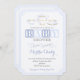 Des blocs de pépinière et des illustrations d'aquarelle de la tasse et de la théière vintages décorent ces invitations à la fête du thé baby shower pour accueillir un petit garçon.
