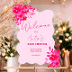 Notre panneau de bienvenue baby shower est orné d'un bouquet d'aquarelle rouge et rose chaud peint à la main, avec des pivoines et des roses, avec une police de script de brosse moderne sur un cadre ondulé. Toutes les couleurs sont modifiables. Baby shower botanique d'été de printemps parfait