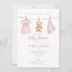 Diese süße Einladung zur Babyparty enthält eine hübsche rosa Babykleiderleine und kann mit Ihren Details in stilvoller Typografie personalisiert werden. Die Rückseite enthält Ihr besonderes Foto und einen QR-Code für die Geschenkeliste. Entworfen von Thisisnotme