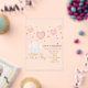 This is a charming baby shower invitation featuring a cute watercolor elephant surrounded by pink hearts and gold stars, announcing that "A Little One is On the Way!"