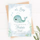Baby shower invitation avec un thème de baleine à bébé mignon. Cette invitation a une belle petite baleine aquarelle peinte à la main. Parfait pour une soirée baby shower délicate.