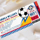 Célébrez votre Baby shower Couples de football avec notre vrai ticket de baby shower de football sport madrid Invitation. Design propose un ballon de football sur un rose admettre un stade sport style de pass d'entrée du stade. Ce design est parfait pour baby shower de soccer, baby shower de maman de football, douche de couple de football ou invitation de jeu de football.