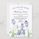 Une belle invitation de baby shower d'aquarelle neutre genre avec des fleurs de printemps, iris violet, sur un arrière - plan blanc.