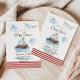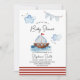 Baby shower thématique bateau à voile avec un bateau, nuages, oiseaux et rayures. Parfait pour le baby shower d'un garçon nautique.