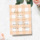 Cette invitation présente un design en vichy classique avec de véritables détails en feuille d'or. L'en-tête de script est une image qui ne peut pas être modifiée. Tous les autres textes sont entièrement modifiables. Pour une personnalisation plus avancée de cette conception, il suffit de cliquer sur le bouton "Customiser" ci-dessus.