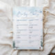 Baby Quiz Spiel. Baby Dusche im Winter Thema mit Pinien und Schneeflocken. Hier ist der Antwortschlüssel 1.b, 2.c, 3.b, 4.b, 5.a, 6.a, 7.b, 8.a, 9.a, 10.b.