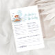 Entrez dans un monde de charme adorable avec notre "Cute Teddy Bear Boy Baby shower Advice And Predictions Card", un design qui saisit l'essence de la douceur de l'enfance et la joie d'accueillir une nouvelle vie. Au coeur de ce design, un ours en peluche aquarellisé prend le devant de la scène, accrochant trois ballons bleus derrière son dos avec un air de secret ludique. C'est une scène attachante qui incarne la joie et l'émerveillement d'accueillir un bébé précieux dans le monde. Sous les pattes de l'ours, un lit de fines fleurs bleues se déploie comme un pré tranquille. Chaque fleur est un témoignage de la beauté de la nature et de l'amour doux et nourrissant qui entoure l'arrivée imminente d'un petit garçon précieux. La palette de couleurs est un doux mélange de bleu doux et de marron terreux, créant une atmosphère sereine et tranquille. Ces teintes ont ouvert la voie à une célébration remplie d'amour et de promesses de nouveaux débuts. Il promet un rassemblement rempli de rires, de conversations sincères et d'anticipation joyeuse d'un petit précieux. Éléments correspondants disponibles.