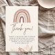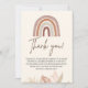 Linda tarjeta de agradecimiento a tus invitados para tu fiesta de Baby shower personalizable. Lindo diseño con estilo boho con lindo arcoiris en tonos cafes y sepia. Esta invitación estilo boho es perfecta para duchas de bebé casuales y elegantes.