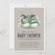 Adorable grüne Baby-Sneakers Baby Dusche Einladung. Diese niedliche grüne Sneaker Babydusche lässt sich leicht an Ihre Veranstaltung anpassen, indem Sie Ihre Veranstaltungsdetails, den Schriftart, die Größe und Farbe des Schriftartes und den Wortlaut hinzufügen.