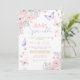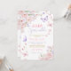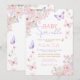 Célébrez votre baby shower avec cette belle invitation Baby Sprinkle Papillon Fleurs Douces. Des fleurs aquarelles douces en rose, lilas, lavande et crème entourent le design, tandis que des papillons délicats ajoutent une touche de mouvement et de grâce.