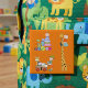 Babyboys mit Kinderzimmer-Train Giraffe und Wagon Button