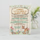 Wunderschöne Waldhirsche mit rustikalem Schild, Blume und kleinen Vögeln. Die Lage ist perfekt für einen Städtetrip. Auf dem Schild steht: "Ein süßer Hirsch ist fast hier", der im Schloss abgesperrt ist, aber alle anderen Formulierungen können geändert werden (und die Farbe des Schriftartes).