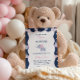 Baby Girl Dusche Einladung mit niedlichem Elefantenmuster mit rosa und grauen Elefanten und niedlich rosa Blume auf dunkelblauem, individuellem Hintergrund.