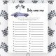 Race Car Thema Baby Dusche Einladungskarte mit Aquarellbildern eines lila (violetten) Vintage Autos und schwarz - weiß Rennen Flagge. "Renn um eine Babydusche."