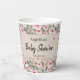Der Baby Shower Paper Cup mit bezaubernden Aquarellfarben-Rose und einem niedlich gestopften Hasen.