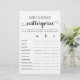 Kaufen Sie dieses Spiel und genießen Sie eine hochwertige Baby Shower Scattergories Karte für Ihre Veranstaltung! Geschlechtsneutrales Schwarz-Weiß-Design.