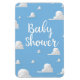 Babydusche Puffe weiße Wolken auf einer sonnigen, blauen Einladung.