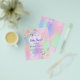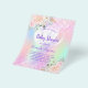 Bitte beachten Sie, dass diese Einladung auf Flyer Papier und sehr dünn ist. Umschläge sind nicht enthalten. Für dickere Einladungen (gleiche Gestaltung) besuchen Sie bitte unseren Shop. Ein Regenbogen, holografisch gefärbter Hintergrund in lila, pink, mint grün, Rose gold. Die Einrichtung besteht aus Glitzer, Glitzern und weißen Ballons, die mit rosa Imitat in Rosa verziert sind. Personalisieren und fügen Sie einen Namen und Party-Details hinzu. Der Name wird mit einem handgeschriebenen Stilskript geschrieben, lila Buchstaben.