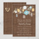 Blumenmotiv und rustikales Holzeinladungs-Design, mit Blume und hängenden Mason-Gläsern auf einem schönen Zweig für Brautparty, Babydusche, Geburtstag und vieles mehr.