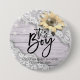 Elegante Vintage Wasserfarbe Blumenjungen / Brautparty Pinback Button. Vintage Spitzen, Sonnenblumen und Streichelleuchten auf rustikalem Holzhintergrund. Ein perfektes Design für Ihren großen Tag. Alle Textstile, Farben, Größen können an Ihre Bedürfnisse angepasst werden.