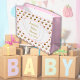Babydusche Wasserfarben Blumenwald Große Geschenktüte