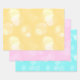 Dieses Set von drei Bokeh Design Packpapieren kommt in prächtigen pastellblau, rosa und gelb.