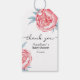Das Baby Shower Gift Tag beinhaltet zauberhafte Aquarellbäder, weiche, rosa Blume und smaragdfarbene Blätter