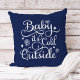 Das saisonale Kissendesign ist mit einem stilvollen Skript "Baby it's Cold Outside"-Typografie-Design mit Stern- und Schneeflockakzenten ausgestattet. Die Farbe des dunkelblauen Untergrundes kann individuell auf Ihre Urlaubsstimmung abgestimmt werden.